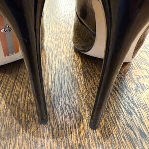 Chic black patent heels with a glossy finish. Perfect for elevating any outfit. 4 inch heel