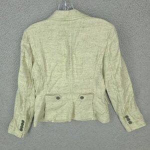Elegant blazer with textured fabric. Features buttoned pockets and classic lapels. Perfect for any occasion.