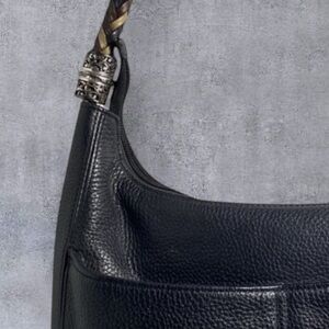 Brighton Black Pebbled Leather Hobo bag with braided leather straps