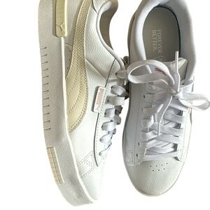 Sleek Puma sneakers in white and tan. Ideal for everyday style.