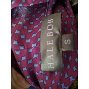 The Hale Bob Women's 100% Silk Blue Purple Geometric Sheer Blouse Top in size small is a stylish and elegant top perfect for any woman's wardrobe. Made from luxurious silk material, this blouse features a geometric pattern in shades of purple, a collared neckline, and long casual sleeves. The sheer fabric adds a feminine touch, while the regular fit ensures comfort and a flattering silhouette. Designed by the brand Hale Bob, this blouse is a versatile and chic addition to any outfit, making it a must-have for those who appreciate high-quality craftsmanship and timeless style.