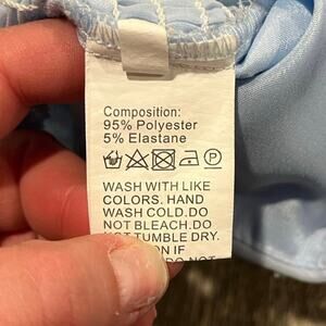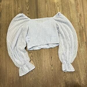 Womens Puffed Long Sleeves Crop Top Smocked Square Neck Pullover Sky Blue Size S