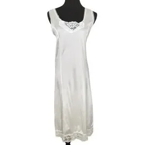 Vintage 90s Satin Slip Dress Cream Nightgown Lingerie Sleep Dress Coquette