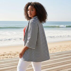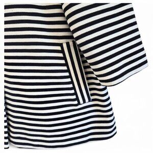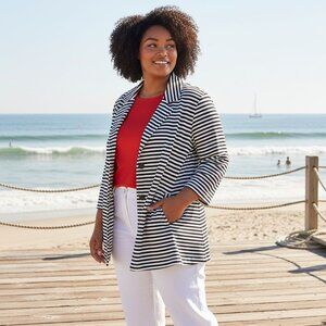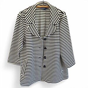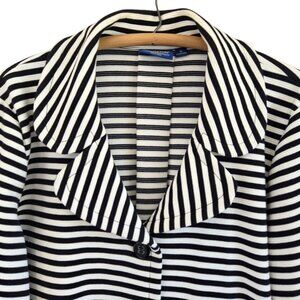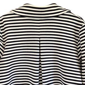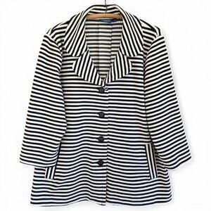 striped jacket, swing blazer, Pendleton jacket, women's blazer, pleated back jacket, collared jacket, 3/4 sleeve blazer, casual jacket, spring blazer, Pendleton striped, button closure blazer, navy and white stripes, blue striped jacket, swing jacket, nautical coat, Vintage Pendleton jacket
