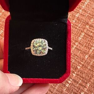 This stunning sterling silver ring is perfect for any occasion and includes a 3ct light blue moissanite center stone. Its elegant design and sparkling center stone make it a timeless piece.