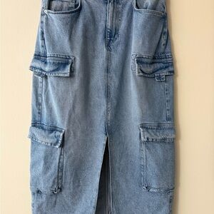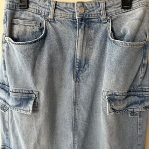 Pilcro Cargo Denim Midi Skirt, Front Slit, size 10, Stretch