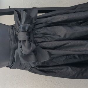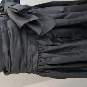 beautiful Sheen to the material. bow can tie in the front or the back. back has a zipper along with three buttons to get in to the skirt.