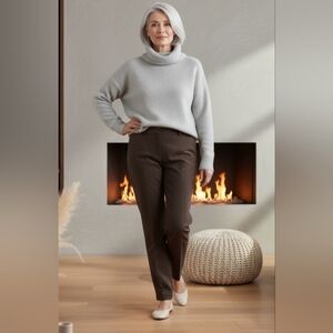 St. John SZ 10 Emma Brown Flat Front Wool Stretch Hi Rise Ankle Pants W/Pockets