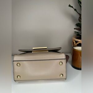 ZAC Zac Posen Eartha Top Handle Leather & Suede Satchel Cream Black Tan