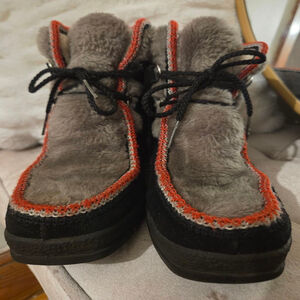 Yodelers Leather Lace Up Boot Vintage Fleece Lined Black Red Gray Size 6 Women