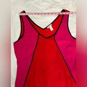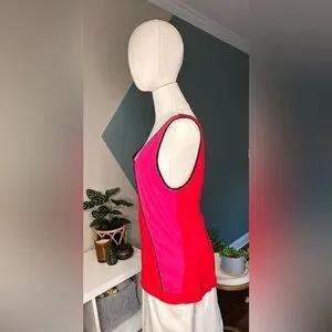 Vintage 90s Y2K Caché Colorblock Tank Top Red Pink Black Piping Women’s Size L
