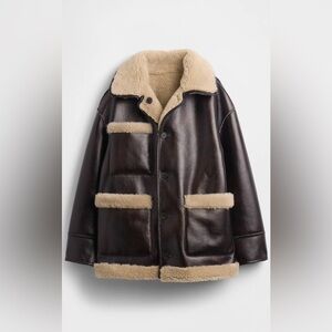 Smooth vegan leather and sherpa reversible jacket.