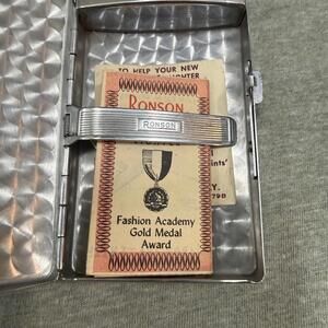 The Vintage Ronson Pal Cigarette Case and Lighter Combo features a classic black design with beautiful purple flowers, adding a touch of elegance and nostalgia to any collection. With the trusted Ronson brand name known for quality and durability, this unique piece is sure to stand out and be a conversation starter among lighter and cigarette case enthusiasts. Perfect for those who appreciate vintage craftsmanship and timeless aesthetics in their tobacciana accessories.