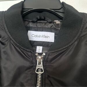 Sleek and stylish bomber jacket. Features a zip pocket on the sleeve. Perfect for a modern look. Two front snap pockets. One secret pocket inside front left top. Lined.