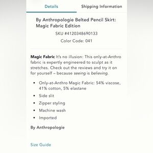 Read the reviews above to see how much people love this classic staple skirt!! Super flattering with Anthropologie’s “magic fabric “ with slight stretch. Side zip. Smoke free home.