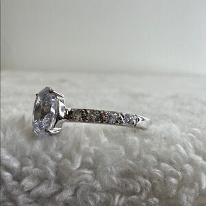 Beautiful sterling silver ring marked 925 NVC, featuring a very sparkly cubic zirconia stone with excellent brilliance and fire. A classic, wearable piece that looks elegant on its own or stacked.