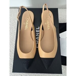 Chanel Interlocking CC Logo Slingback Flats – Size 37 EU | New in Box