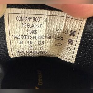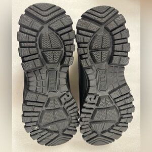 5.11 Tactical Company 3.0 Slip On Boots. Black, Size Men’s 11W. These boots were purchased new and worn a handful of times. Left boot shows some creases. Both boots show hardly any sole wear. They do not have a protective/steel toe. Feature ortholite shoe inserts.
