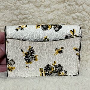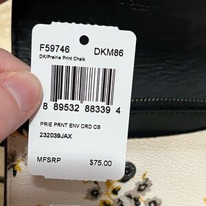 New Coach Prairie Print envelope style card change wallet with keychain. Wallet is new but there is some wrinkling to the interior and a small color spot on the back. All wear is show in photos. Has zipper section and slip pockets. Please see all photos for any wear as shown.