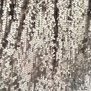 Fully sequined dress with thin spaghetti straps. Elastic waist and fully lined.