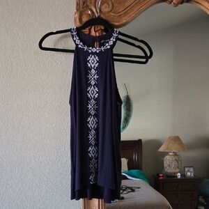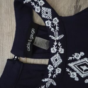Cable & Gauge Dark Blue Sleeveless Blouse with White Embroidery