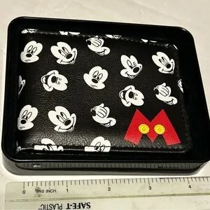 Questions? Leave a comment below! New with bottom tin case Disney Mickey Mouse Wallette black & white w/ logo & Red M unisex bi-fold new