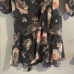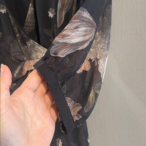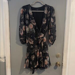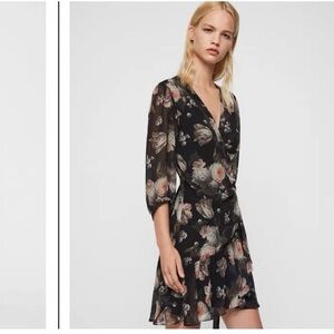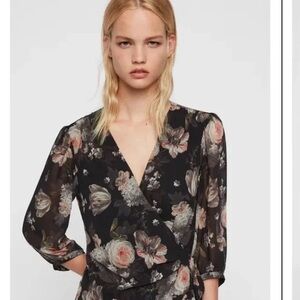 ALL SAINTS Jade Eden floral wrap mini dress size XS black long sleeve