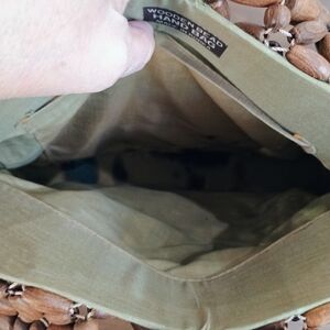 **** Needs cleaning on the inside of the bag***Elevate your style with this unique handcrafted wooden beaded tote bag. Perfect for adding a natural touch to any outfit.