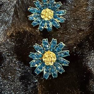 Enhance your style with these dazzling blue and silver tone floral rhinestone earrings. Perfect for adding a touch of glamour to any outfit. 2 Pair clip on
