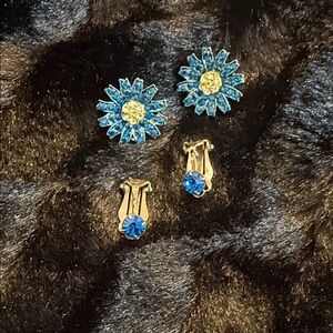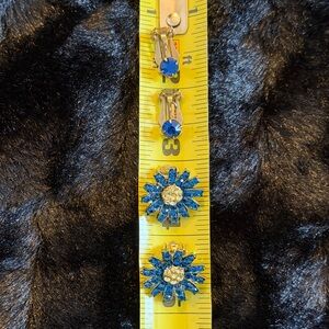 2 Dazzling Blue and Silver Tone Floral Rhinestone Earrings