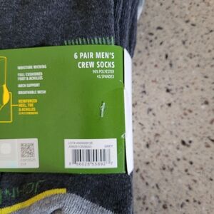John Deere 6 Pairs Mens Shoe Size 6-12.5 Performance Workwear Crew Gray Socks