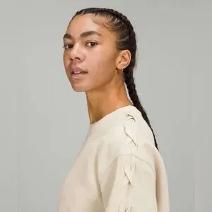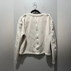 Elevate your style with this elegant cream jacket featuring unique braided sleeves. Perfect for any occasion.
