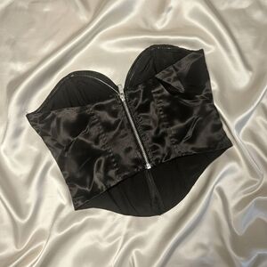 H&M Divided Black Satin Bandeau Corset Top With Sweetheart Neckline