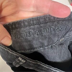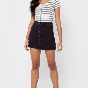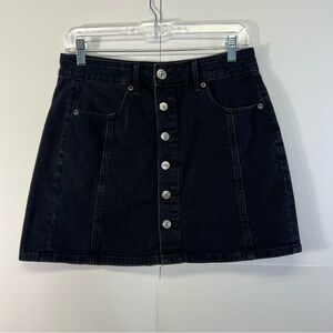 6 American Eagle Black Denim Mini Skirt Button Down Skirt Pockets Hi-Rise A-Line