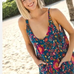 Natural Life Chelsea Floral Blue Jumpsuit NWOT