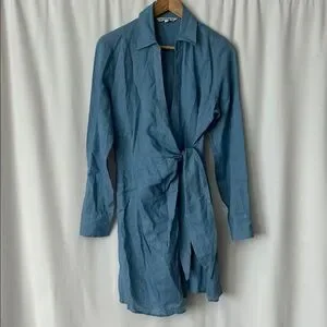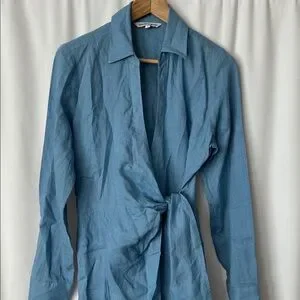 Veronica Beard Sky Blue Linen Long Sleeve Shirt Dress **Size 6** 🌸🌸