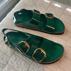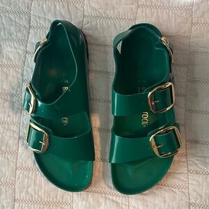 Women's Big Buckle Birkenstocks, Emerald Green, Size 40. Worn but in great condition. Slight shine to them.