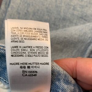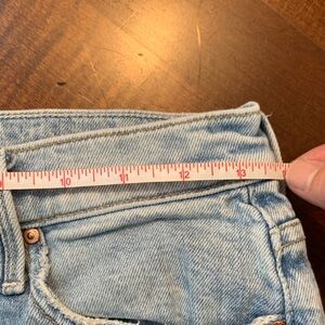 Chic light wash jeans with a flared silhouette. Perfect for casual wear. Adds a trendy touch to any outfit. EUC