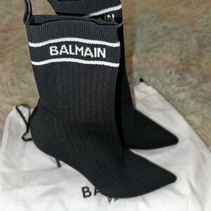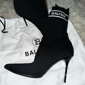 BALMAIN Skye Stretch Knit Ankle Boots In Black Size 37