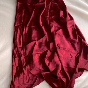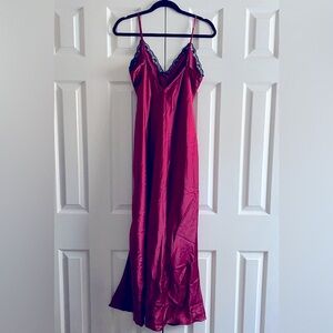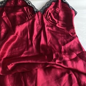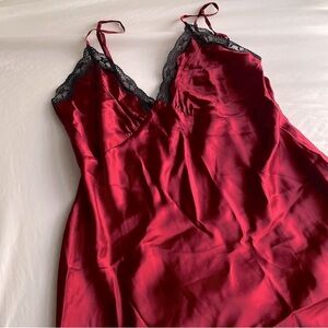 Stunningly romantic and absolutely gorgeous red silk night gown. Lace detail with adjustable straps. V neck, long maxi length, single side split. Vintage. New!