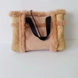 Stylish UGG tote with plush shearling trim. Features a sleek black panel. Perfect for versatile use.