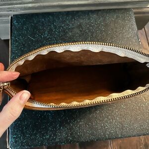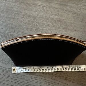 Brand new, never used. Portland Leather Eclipse zippered make up bag in smooth brown leather.