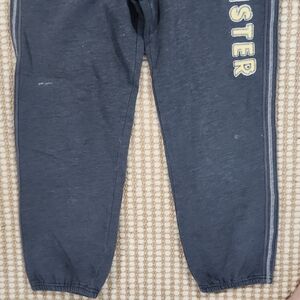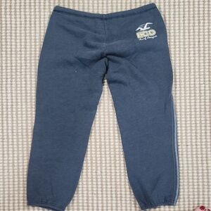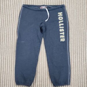 Stylish navy joggers featuring bold yellow Hollister lettering. Ideal for casual outings.