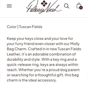 Charming dog-shaped leather keychain by Patricia Nash. Features a floral pattern. Perfect for adding style to your keys. Quick release ring.