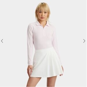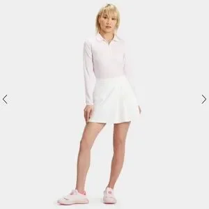 A best seller for many reasons. Retro fashion inspired with a gradient ribbed collar and unique quarter zip taping embellishment make this style a standout on the course while the stretchy silky tech nylon fabric - boasting performance properties for days - drapes elegantly on the body. Pair it with one of my posted G/Fore effortless skorts (white? pink? black?) for a chic on-course look.