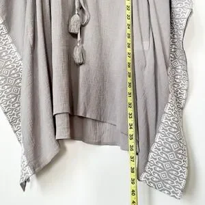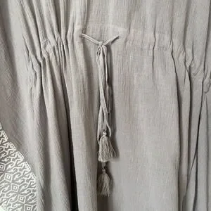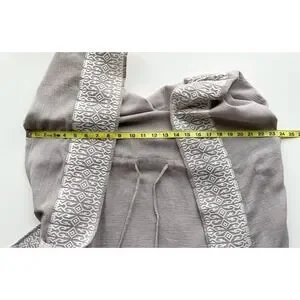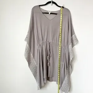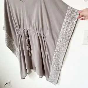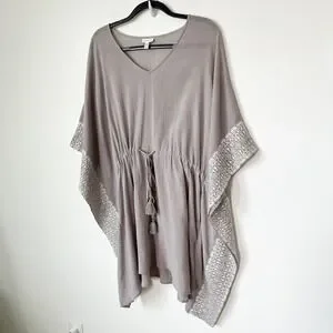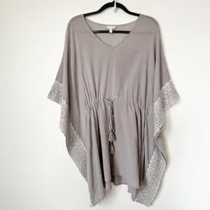 Garnet Hill Embroidered Kaftan Swim Cover Up Gray White Drawcord Tassel Large