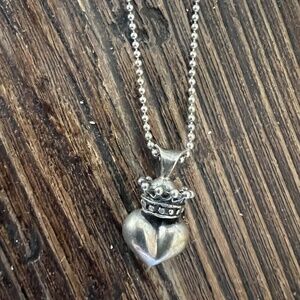 Pre-Loved. Vintage King Baby Studios Crown Heart Necklace. Pendant is on a long chain. Please see all photos. On the clasp it say's .925 Italy. Purchased in the early 2000's in Santa Monica, California from a Jewelry Store that was inside of the Lowe's Hotel.