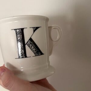 Anthropologie K Monogram Cream Mug with Black Lettering
