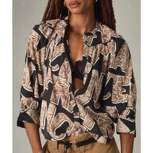 Anthropologie Maeve Top Womens Small Blouse Oversized Graphic Print Cotton Boho