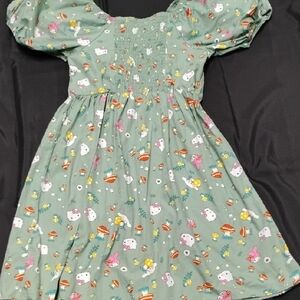 Adorable Sanrio dress featuring playful character print. Stylish puff sleeves enhance the look.